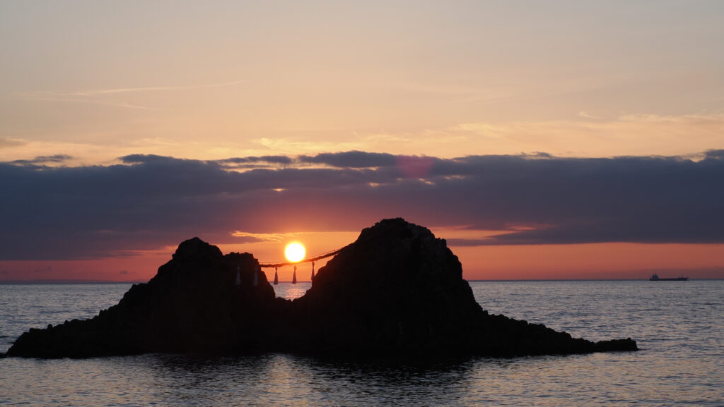 なんと夫婦岩の間に夕日が沈むという、幻想的な光景が広がるんです✨