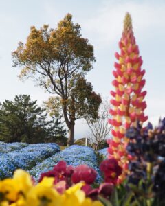 ・ルピナス・パンジーは3月下旬から咲き始め、ネモフィラと共演