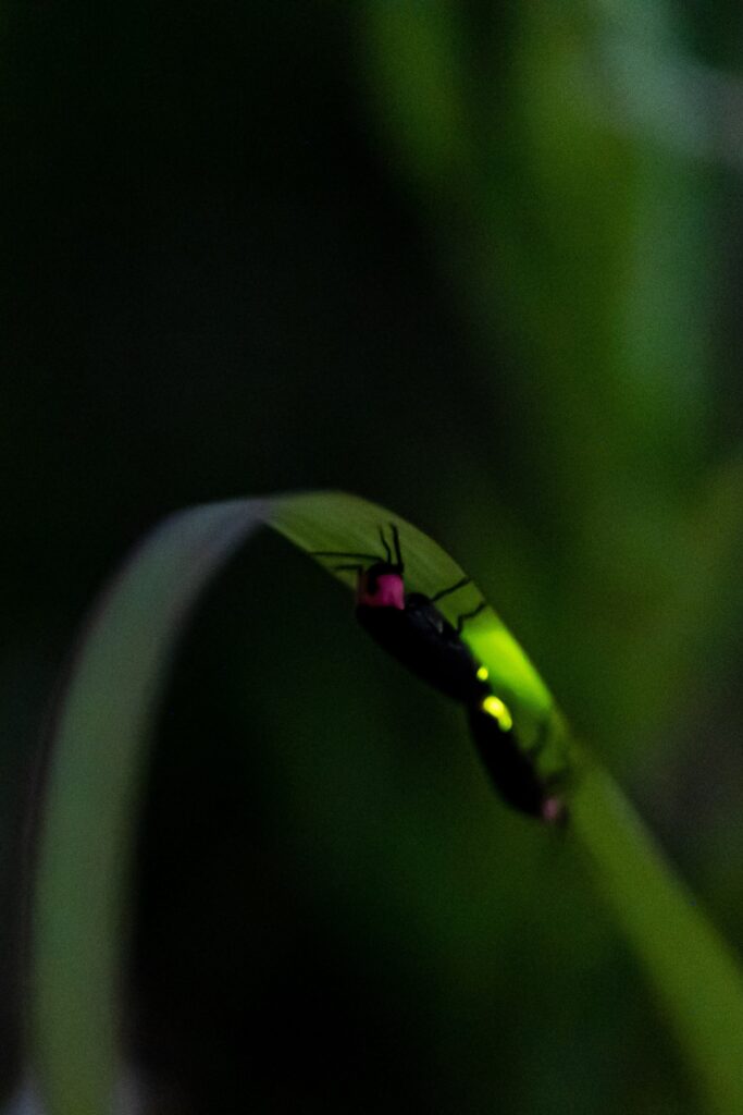 オスは2つ、メスは1つの発光器を持ち、川辺を飛ぶのは主にオス。